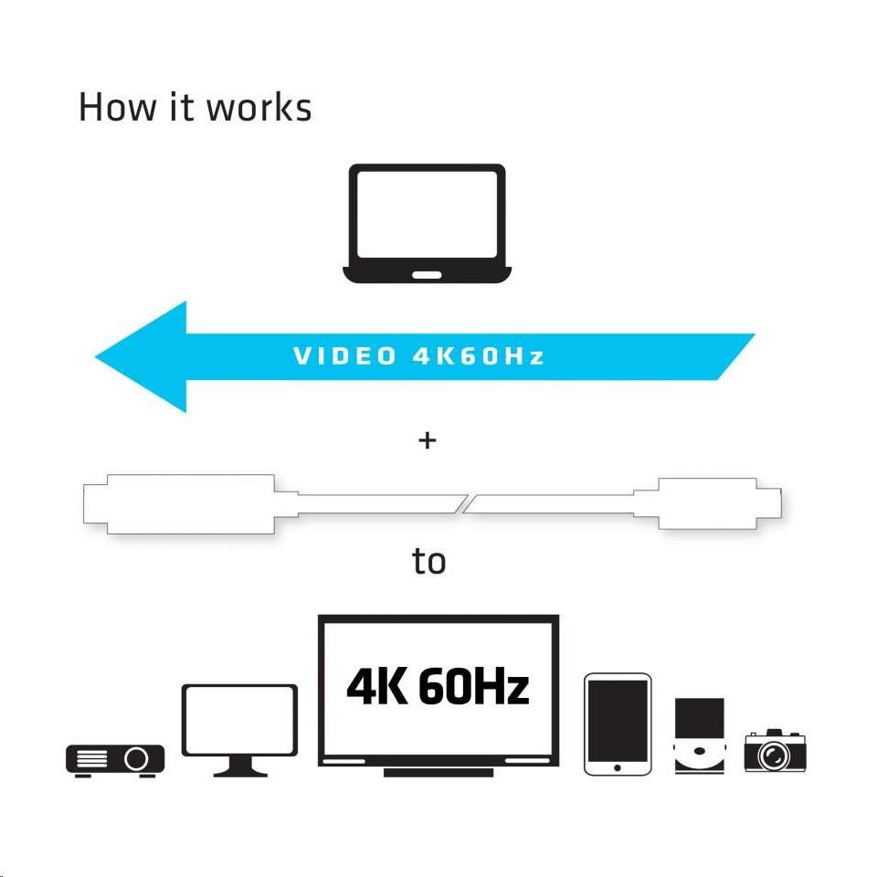CAC-1514 Club 3D je aktivní převodník signálu HDMI ™. Kabel UHD USB C na HDMI ™ 2.0 je nejjednodušší řešení pro připojení zdrojového zařízení obsahující port USB 3.1 Type C s alternativním režimem DisplayPort ™ k monitoru UHD monitoru, televizoru nebo projektoru s podporou rozhraní HDMI ™ 2.0. Adaptér je napájen pomocí portu USB C a nevyžaduje tak žádné externí napájení.