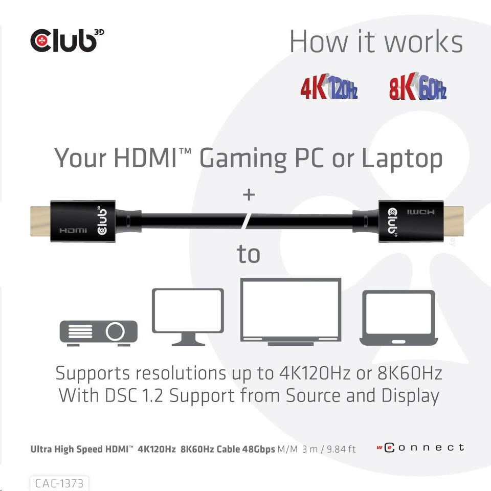 Club3D Kabel HDMI 2.1 Ultra High Speed HDMI, 4K 120Hz, 8K60Hz, 48Gbps M/M, 3m