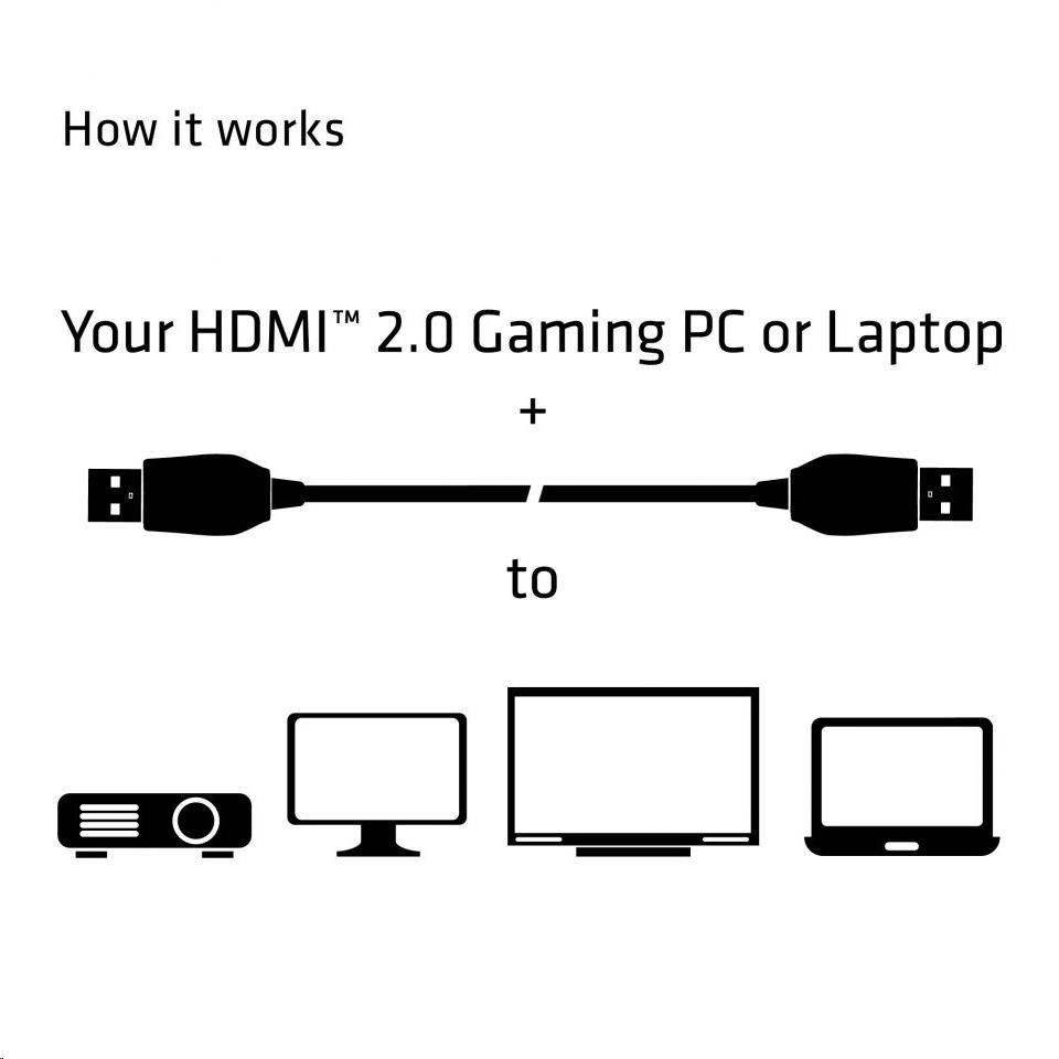 Kabel 3D Club HDMI ™ 2.0 High Speed 4K UHD umožňuje propojení vašeho herního PC nebo notebooku s technologií HDMI ™ 2.0 k UHD monitoru nebo k jinému zařízení s podporou rozhraní HDMI ™ 2.0. Plně podporuje specifikaci ‘HDMI High Speed s rozhraním Ethernet‘, která zajišťuje podporu videa až ve 4K UHD 3840x2160p při 60Hz, včetně audio a datových toky. Zahrnuje vyhrazený datový kanál umožňující vysokorychlostní síťové připojení až do rychlosti 100 Mb/s.
