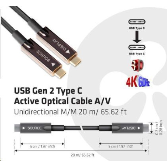 Club3D Kabel USB 3.2 typ C Gen2, aktivní, (M/M), 20m, optický, aktivní, unidirectional