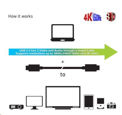 This feature ensures optimum performance between the connected devices. Supports up to 4K 60Hz UHD video. Video requires host device to support DisplayPort™ Alt Mode.