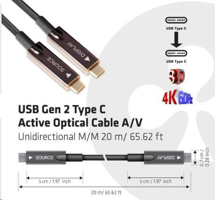 Club3D Kabel USB 3.2 typ C Gen2, aktivní, (M/M), 20m, optický, aktivní, unidirectional