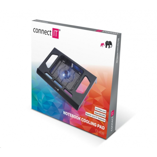 Chladící podložka pod notebook Breeze Technické specifikace: VENTILÁTOR: Průměr ventilátoru: 13cm s LED modrým podsvícením Rychlost: 900 + -10% (RPM) Hlučnost: 23 dBA Průtok vzduchu: 42 CFM Napájení: Port USB (5V DC) Spotřeba: 1.75W DESIGN: Barva: černá Materiál: plast + kov Kompatibilita: až 17" notebooky Rozměry: (Š x V x H) 295 * 350 * 50mm Hmotnost: 380 g.