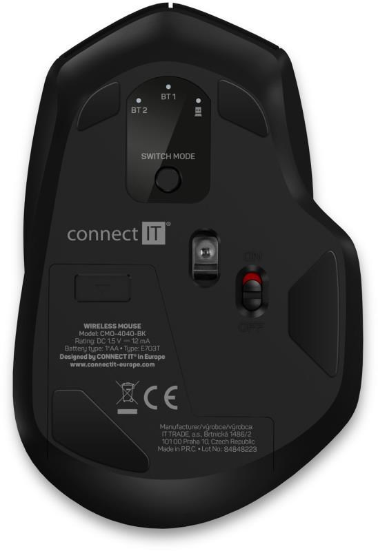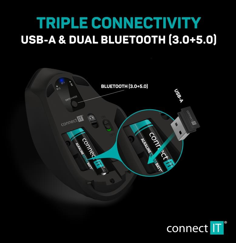 CONNECT IT Triple SmartSwitch bezdrátová myš, 2.4 GHz & Bluetooth 5.0, černá