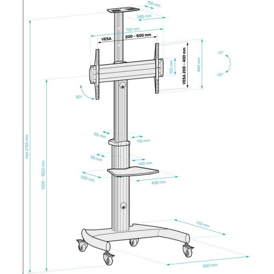 Rozměry v nejvyšší poloze (š x h x v): 84 × 71 × 212 cm