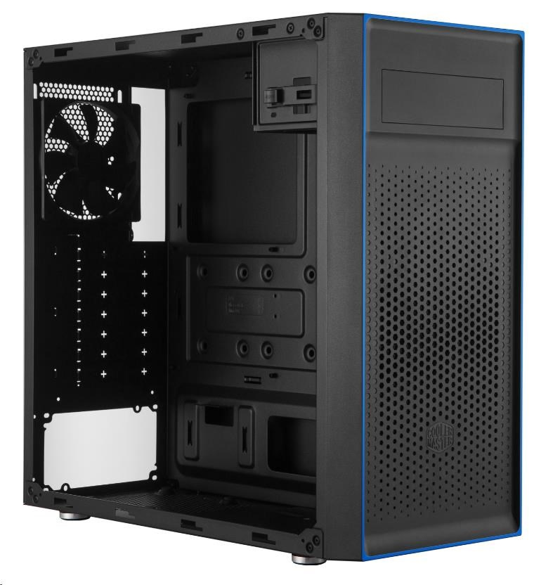 The MasterBox E501L is the essential solution for optimized cooling. A gradient of perforations below the ODD allow fresh air into the system for both air-cooled and liquid cooled configurations. The glossy, colored accent around the front panel compliments the ventilated area.
