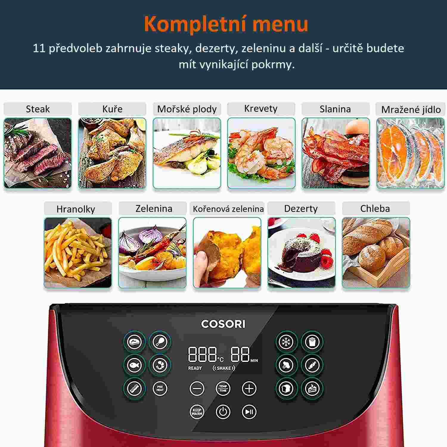 Cosori CP158-AF PREMIUM – 5.5L horkovzdušná fritéza + 5x špíz a gril. rošt, red