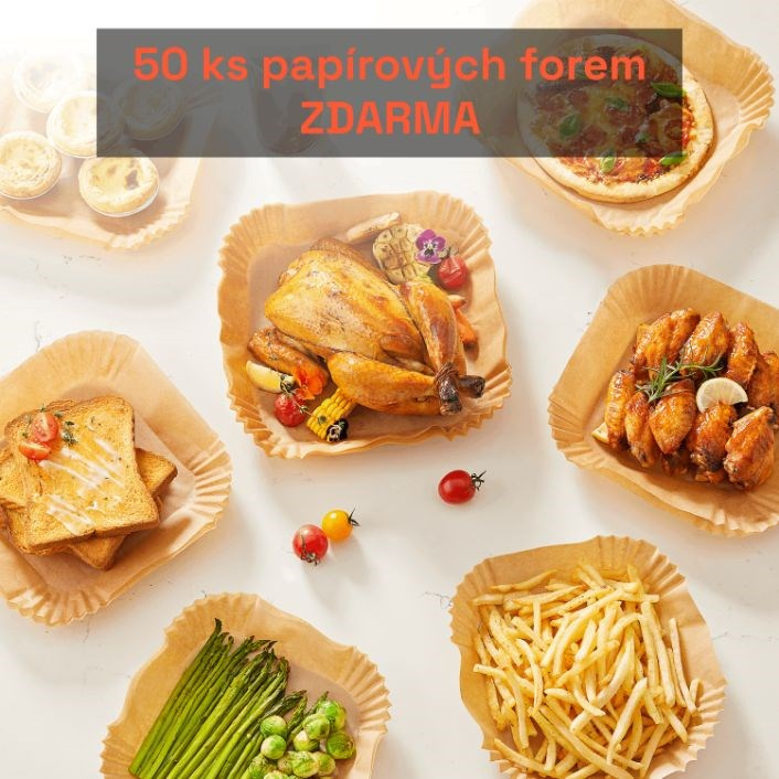 K fritéze Cosori Premium II je dodáváno 50ks papírových forem, které vám usnadní čištění fritézy, pokud vás čas opravdu tlačí. Vložky z pečícího papíru také poskytnou dodatečnou ochranu před poškrábáním koše.