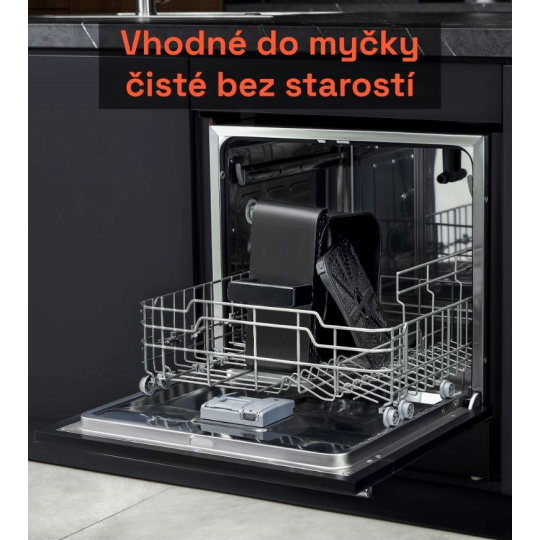 Vyjímatelný fritovací koš a nádoba jsou vyrobeny z odolného, nepřilnavého a zdravotně nezávadného materiálu (bez BPA a BFOA) a lze je mýt v myčce. Vždy chladná rukojeť a tlačítko pro uvolnění koše eliminují riziko popálení a nechtěného uvolnění.