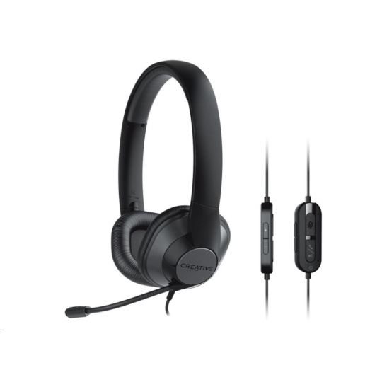 Creative HS-720 V2 má vše pro pracovní telefonáty: mikrofon s potlačením šumu, odezvu mikrofonu pro kontrolu hlasitosti a integrované dálkové ovládání s tlačítkem ztlumení mikrofonu a příjmu hovoru.