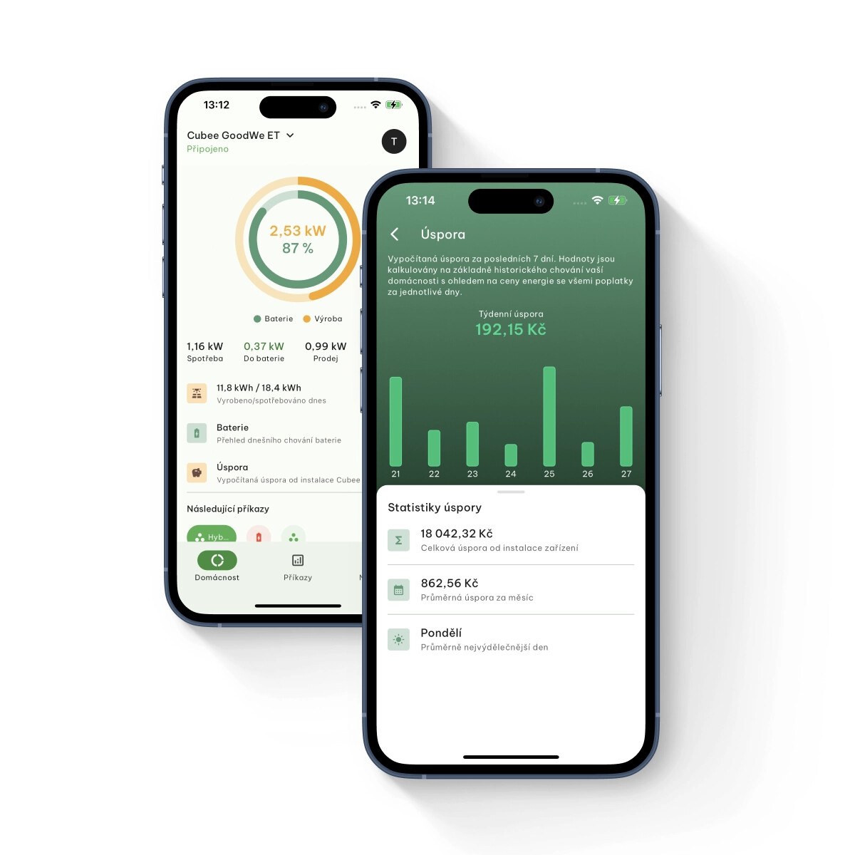 S Cubee získáte okamžitý a přesný přehled o finančních úsporách. Analyzuje spotřebu a výrobu elektrické energie, přičemž počítá s cenou včetně veškerých poplatků. V aplikaci Cubee uvidíte úspory za jednotlivé dny, týdny i měsíce.