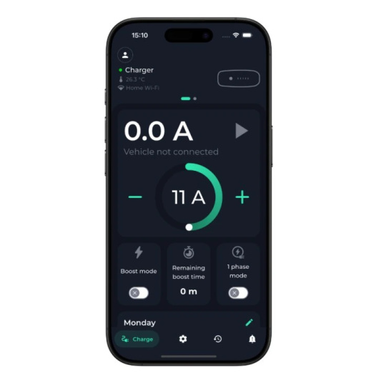 V případě, že preferujete offline verzi, budete mít možnost Vaše nabíjení řídit v mobilní aplikaci přes Bluetooth. Pokud se rozhodnete, že potřebujete Wi-Fi konektivitu, můžete ji jednoduše zakoupit v aplikaci. Jako další možnosti nabízíme verzi s Bluetooth a Wi-Fi konektivitou, která umožňuje ovládání nabíjení tam, kde je dostupné internetové připojení. Nejvyšší variantou je verze s Bluetooth, Wi-Fi a LTE, což Vám umožní plnou kontrolu nad nabíjením odkudkoli v EU.