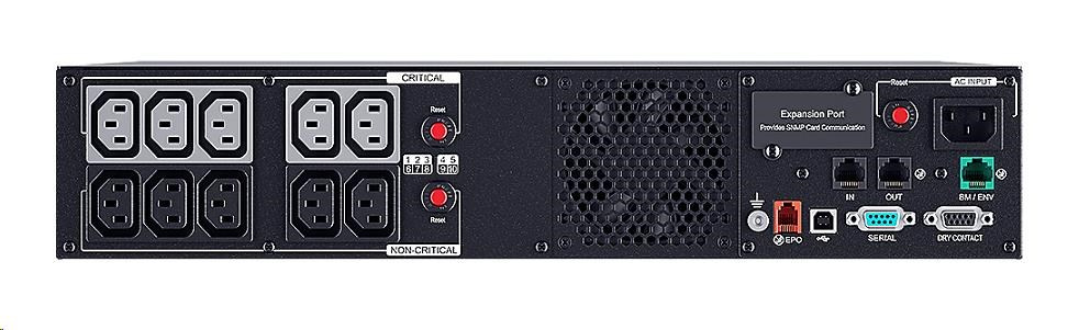 | Dodávka obsahuje | UPS, Kolejnice a Úchytypro montáž do Racku, sériový, USB. EPO kabel, uživatelská, příručka, kabely (2) IEC C13-C14 |