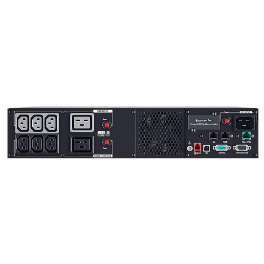 | Dodávka obsahuje | UPS, Kolejnice a Úchyty pro montáž do Racku, sériový, USB, EPO kabel, uživatelská příručka, kabely (2) IEC C13-C14 a (1) IEC C19-C20 |