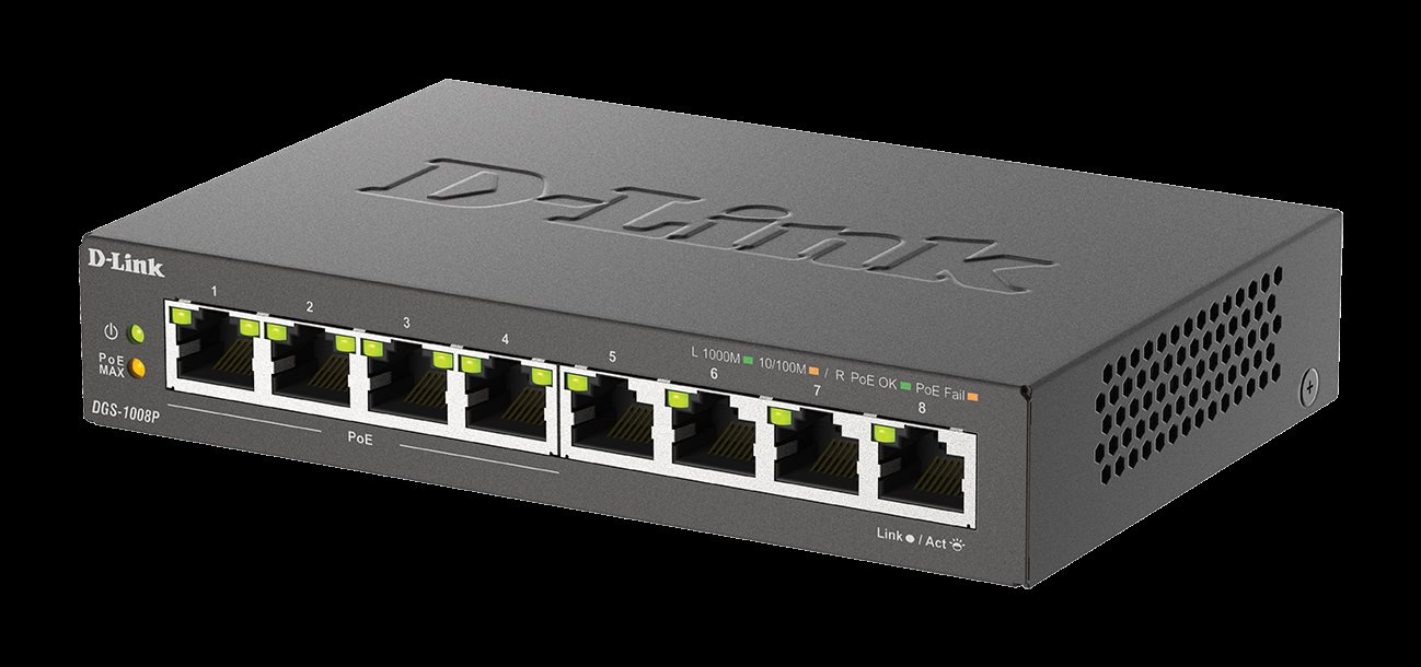 8-port 10/100/1000 Desktop Switch w/ 4 PoE+ Ports - 8-Port 10000BaseTX Auto-Negotiating (NWAY) 10/100/1000Mbps - IEEE 802.3at standard compliant - Includes 4 PoE ports (Ports 1-4) - Auto Half-/Full-Duplex Mode - PoE output up to 30 watts per port - Total power budget 68 watts per switch - Auto-detection of Powered Device - Supports 802.1p QoS and DSCP - Supports Jumbo Frame up to 9720Bytes - Supports cable diagnostics - D-Link Green Technology - 53.5V/1.5A external power supply - Desktop size (No rackmount kit available).