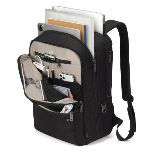 Batoh FIVE kombinuje bezpečnost, organizaci a ergonomické pohodlí v elegantním a funkčním designu. Ochranná přihrádka na notebook je vybavena středovou podpěrou ve tvaru písmene V, která zajišťuje, že vaše zařízení zůstane bezpečně na místě a v optimální poloze. V přední přihrádce s organizovanými kapsami je přehledně uloženo příslušenství a nezbytné věci, zatímco ergonomický, prodyšný polštář na zádech poskytuje celodenní pohodlí. Je vyrobena z 32 recyklovaných PET lahví, což představuje udržitelnou volbu, která neohrožuje funkčnost ani odolnost.