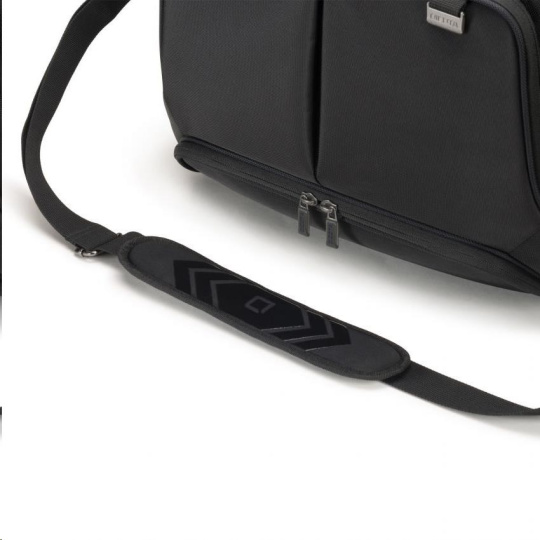 Travel "1st class" with the Eco Top Traveller PRO. The toploader bag reliably accompanies you everywhere and meets the highest standards of quality, functionality and protection: DICOTA's attention to detail makes this bag one of your most reliable business partners! The fitall system separating wall in the notebook compartment lies protectively across your notebook and fits automatically to sizes from 15-17.3". The perforated and thus light EVA foam material in the lockable notebook compartment perfectly protects the edges of your device. The anti slip technology coating ensures perfect grip for your notebook in the compartment. Excellent protection for your tablet up to 12.9" thanks to the EVA-shaped compartment with extra-soft Nylex inner lining. Generous storage space for documents. The front pocket with keychain and insert pockets allows to organise the personal equipment and provides space for additional mobile accessories. Additional pocket for charger and cables. The bag is light and comfortable in your hand thanks to the high-quality genuine leather handles. Trolley strap can also be used as an additional document compartment. Bag bottom is made from waterproof material. The Eco Top Traveller PRO is therefore perfect for you if you are always on the go and want to support the recycling of PET bottles with an eco-friendly case.