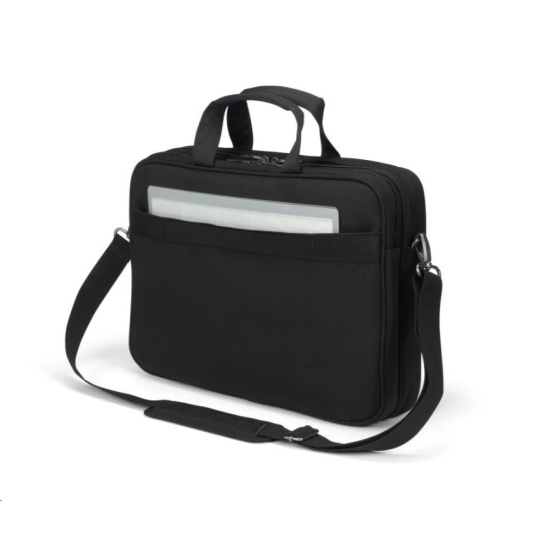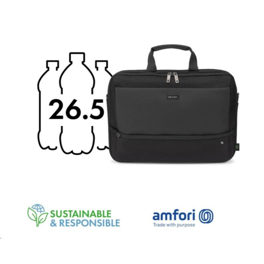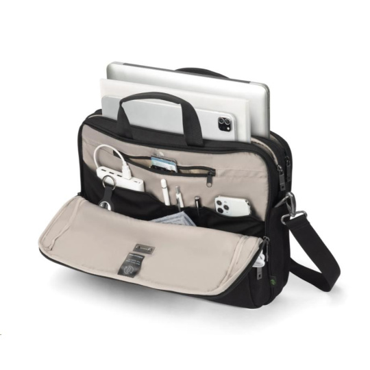 Brašna Top Traveller FIVE je navržena tak, aby chránila vaše zařízení a zároveň vám umožňovala snadný přístup k nezbytnostem. Uzamykatelná přihrádka na notebook s ochranou DCT Notebook Protection a polstrováním rohů z HDF pěny a EVA zajišťuje maximální bezpečnost, zatímco integrovaná kapsa poskytuje bezpečné uložení tabletů do velikosti 12,9". Hlavní přihrádka nabízí dostatek prostoru pro dokumenty, složky nebo mobilní vybavení a přední část obsahuje uspořádané kapsy na příslušenství. Malá přední kapsa poskytuje další úložný prostor pro kabely a menší předměty. Vyrobeno z 26,5" recyklovaných PET lahví.