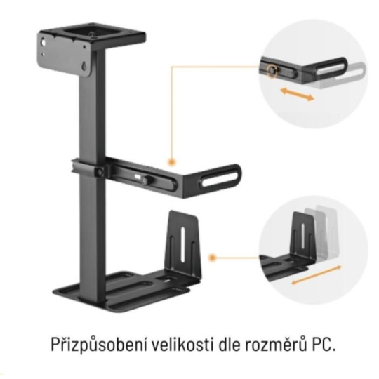 - Nastavitelná šířka a hloubka: Ideální pro různé velikosti počítačů (šířka 155–235 mm).