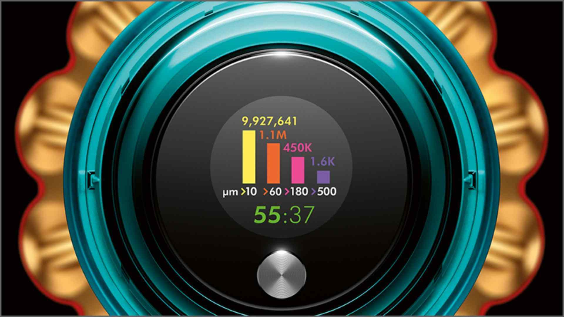Displej LCD ukazuje, co bylo vysáto, a v reálném čase zobrazuje vědecký důkaz o hloubkovém čištění.