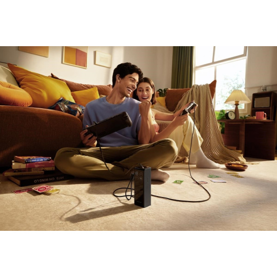 Už žádné ztracené kabely, dva integrované 100W USB-C kabely s navíjecím mechanismem a poutkem jsou vždy po ruce, úhledně uložené v elegantním designu powerbanky, s navíjecím mechanismem, který vám umožní přístup k napájení během několika sekund.