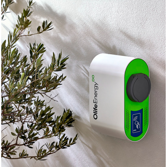 OlifeEnergy WallBox je celokovová odolná dobíjecí stanice pro nabíjení všech elektromobilů střídavým proudem (AC), výkonem až 22 kW. Určena je pro vnitřní i venkovní použití, s možností montáže na zeď nebo na profil kotvený do země (sloupek). WallBox může být vybaven dle přání zákazníka zásuvkou nebo kabelem (Type 2 i Type 1), případně speciálním krouceným kabelem.