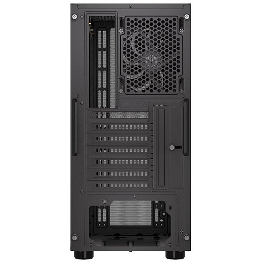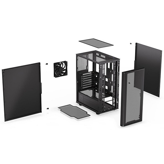Skříň formátu Middle Tower nabízí dvě 2,5" pozice pro SSD disky a jednu 3,5" pozici pro pevný disk. Na horní části se nachází dva USB 3.0 porty, sluchátkový výstup a audio vstup pro mikrofon. Vybavena je jedním 120 mm ventilátorem, který spolu s perforovaným čelním panelem zajišťuje dostatečné proudění vzduchu. Důmyslné řešení umožňuje pohodlné umístění až 360 mm dlouhého výměníku vodního chlazení na přední straně. Ve skříni je dostatek prostoru pro chladič CPU do výšky až 161 mm a grafickou kartu o délce až 315 mm. Dodávána je bez zdroje. Součástí je také sada prachových filtrů.