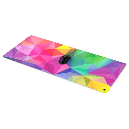 Voděodolná tkanina s barevným grafickým vzorem připomínajícím krystal, detailní lem s potiskem a protiskluzová spodní strana - vše, co potřebujete pro vysoce kvalitní podložku pod myš určenou pro přesné a dynamické pohyby. Podložka Crystal Spectrum XL vnese na váš pracovní stůl nádech stylu.