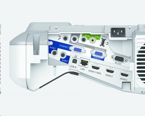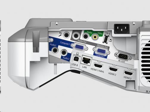- Rozhraní: USB 2.0 typu A, USB 2.0 typu B, RS-232C, HDMI vstup (3x), kompozitní vstup, RGB vstup (2x), RGB výstup, audiovýstup, stereofonní konektor mini-jack, audiovstup, stereofonní konektor mini-jack (3x), vstup pro mikrofon, Ethernetové rozhraní (100 Base-TX / 10 Base-T), bezdrátová síť LAN IEEE 802.11 b/g/n (volitelně), VGA vstup (2x), VGA výstup, MHL
