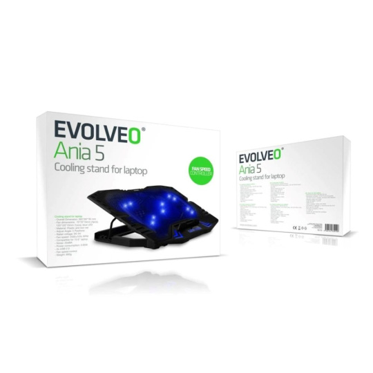 EVOLVEO Ania 5, chladicí podstavec pro notebook, modré podsvícení