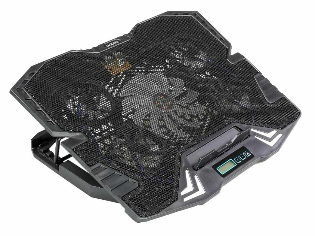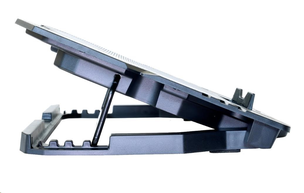 Herní polohovatelný chladící podstavec pro notebooky do velikosti 15.6". 1x 120 mm a 4x 60 mm ventilátor. 2x USB 2.0. Regulace rychlosti otáček ventilátoru, displej.