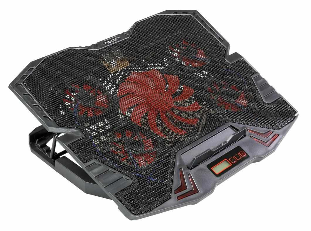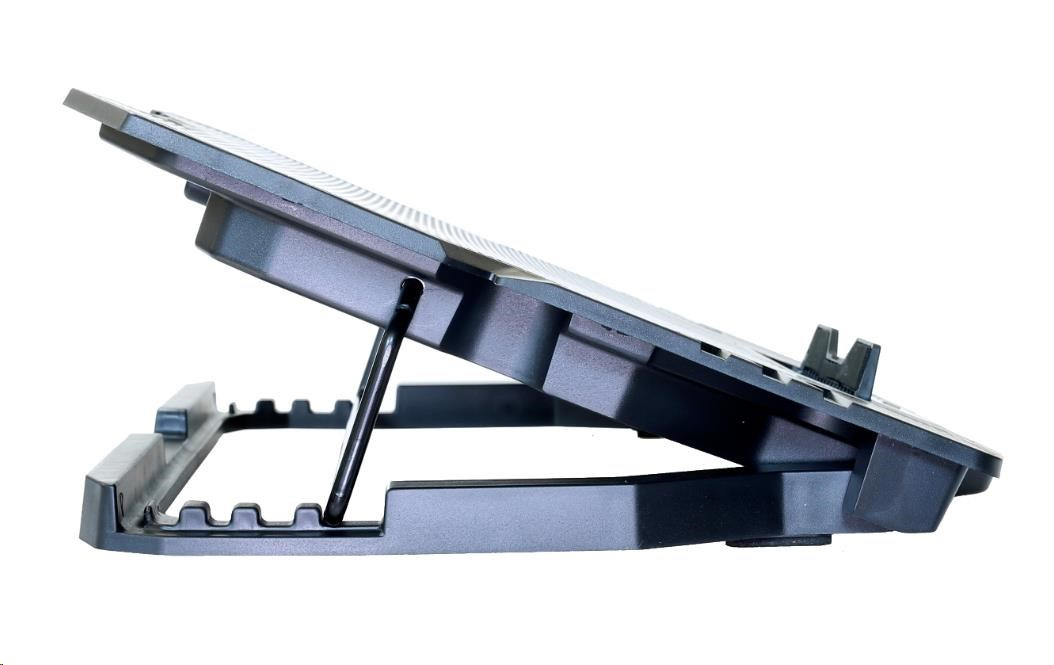 Herní polohovatelný chladící podstavec pro notebooky do velikosti 15.6". 1x 120 mm a 4x 60 mm ventilátor. 2x USB 2.0. Regulace rychlosti otáček ventilátoru, displej.