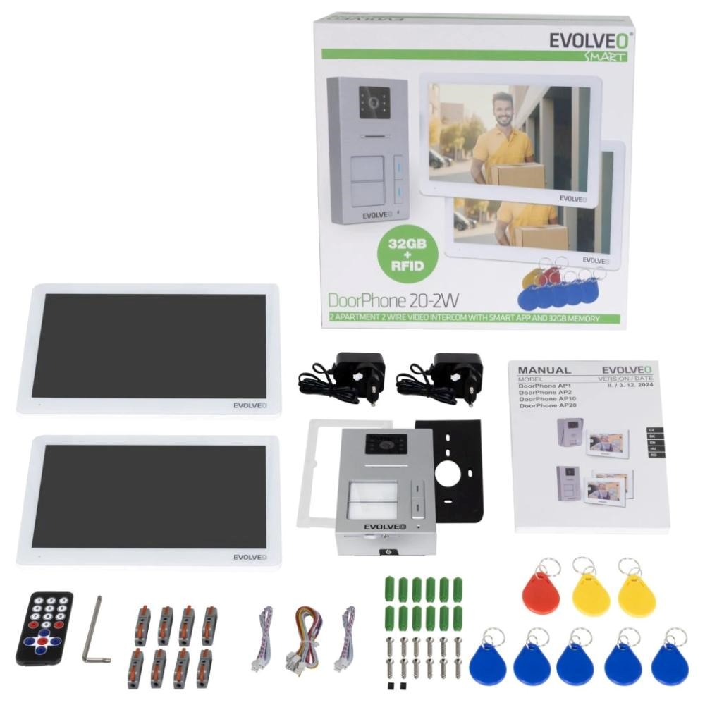 EVOLVEO DoorPhone 20-2W - 2 drátový videotelefon s aplikací pro dvě domácnosti a 32GB pamětí