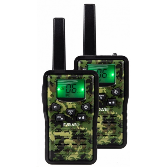 Sada vysílaček, které dokáží pracovat v režimu PMR 446 (446MHz) s výkonem 0,5W, ale též na frekvenci 448MHz s výkonem 2W. S výkonnou baterii s kapacitou 1300mAh se můžete vydat i na vícedenní výpravu a stále budete ve spojení. Pro komunikaci je 8 dostupných kanálů, z nichž každý je možné dále provozovat se 121 kódy (38 kódů CTCSS a 83 kódů DCS). Kódy se používají pro odfiltrování cizích účastníků vysílajících na stejném kanále. Walkie talkie obsahuje také funkci monitorování kanálu, údaje jsou zobrazovány na velkém a přehledném displeji.