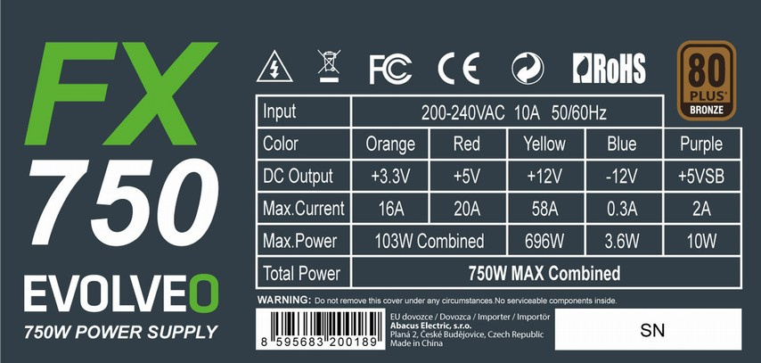 EVOLVEO FX 750 , zdroj 750W ATX, 14cm, tichý, 80+ bronze, bulk