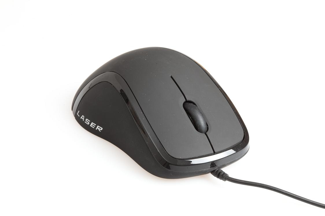 Laserová myš LASERWIRE ML-507B standartní velikosti, ergonomicky tvarovaná v praktické černé barvě. Skvělá pro běžnou práci diky rozlišeni 1600DPI a 5 tlačitkům.