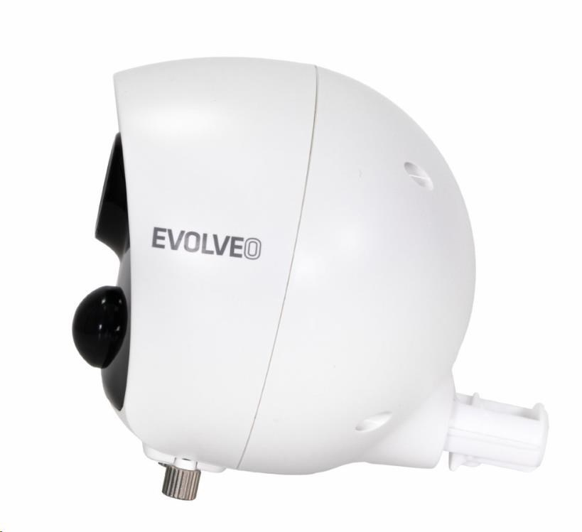 Náhradní kamera určená pro rozšíření instalace EVOLVEO Detective BT4. Kamera je vybavená akumulátorem s 5000mAh kapacitou. Pod krytkou se nachází USB-C konektor pro nabíjení a tlačítko pro zapnutí/vypnutí a párovací režim. Kamera je vybavená nočním IR přísvitem a PIR čidlem pro rozeznání pohybu. Součástí kamery je i mikrofon a reproduktor pro obousměrnou hlasovou komunikaci.