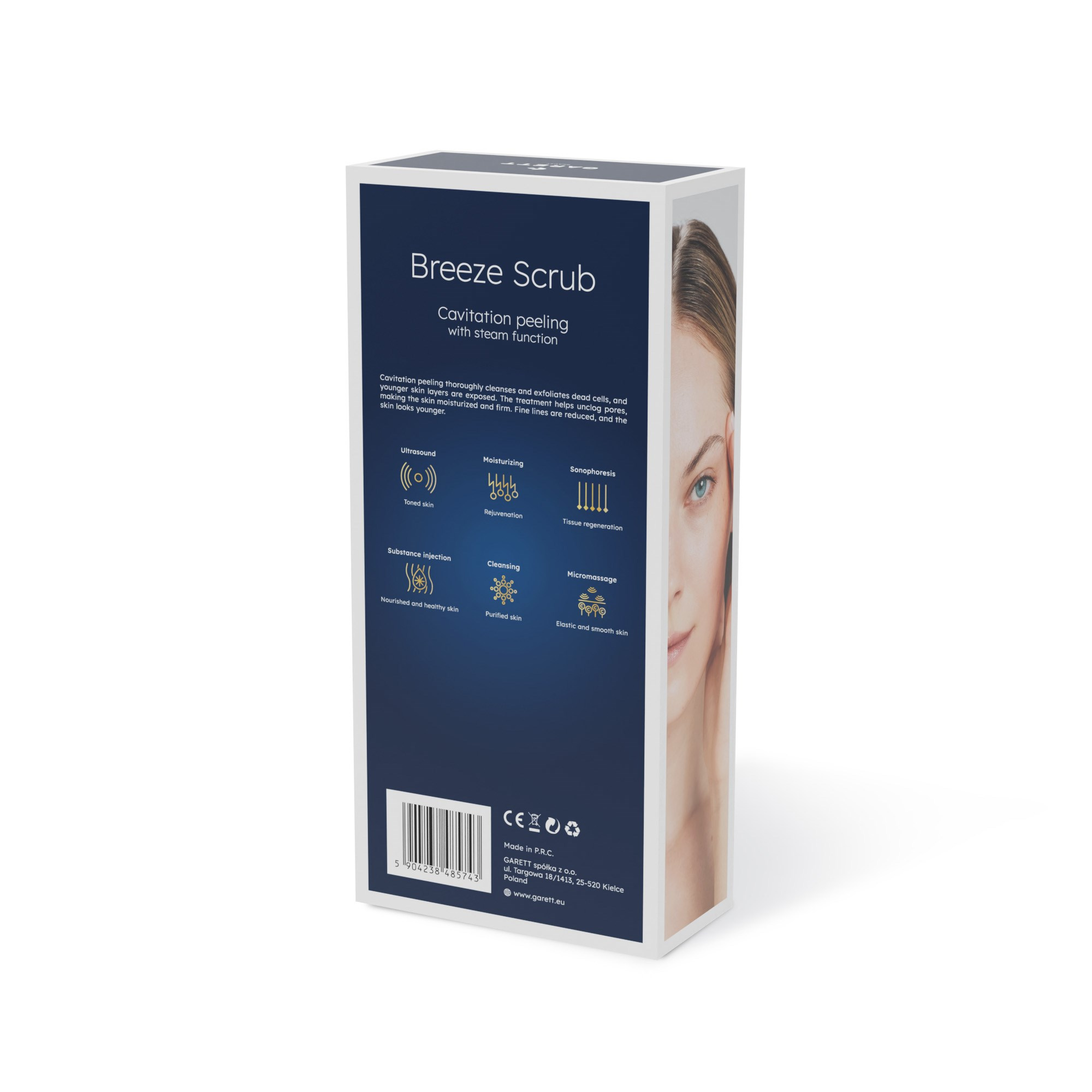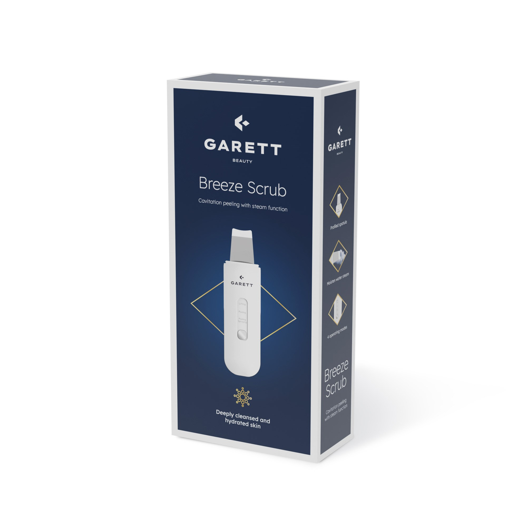 Garett Beauty Breeze Scrub je zařízení se dvěma unikátními funkcemi: ultrazvukovou kavitací (režim peeling) a sonoforézou (režim liftingu). Tyto technologie využívají ultrazvukové vlny, ale jejich účinky jsou různé. První funkce pomáhá vyčistit pokožku, zbavit se odumřelé kůže. Výsledkem jsou mladší vrstvy bez kožního mazu a nečistot, které dodávají obličeji svěží a rozjasněný vzhled. Druhý naopak zavádí aktivní složky hluboko do pokožky, umožňuje jim efektivněji působit a přináší pocit uvolnění. Sonoforéza působí jako jemná masáž a dále podporuje krevní oběh. Kromě klasické sonoforézy má přístroj i funkci EMS elektrostimulaci