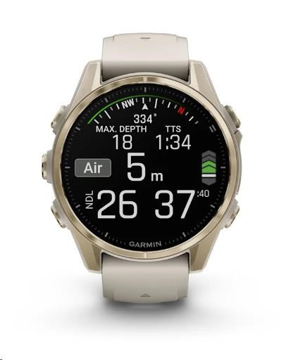 Garmin fenix® 8 – 43 mm, AMOLED, Sapphire, Soft Gold / Fog grey se silikonovým řemínkem, EU