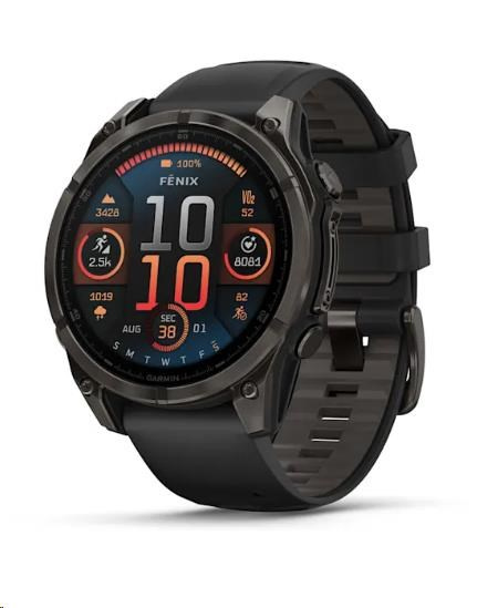 Garmin fenix® 8 – 47 mm, AMOLED, Sapphire, Carbon grey DLC titanium s Black/Gray silikonovým řemínkem, EU