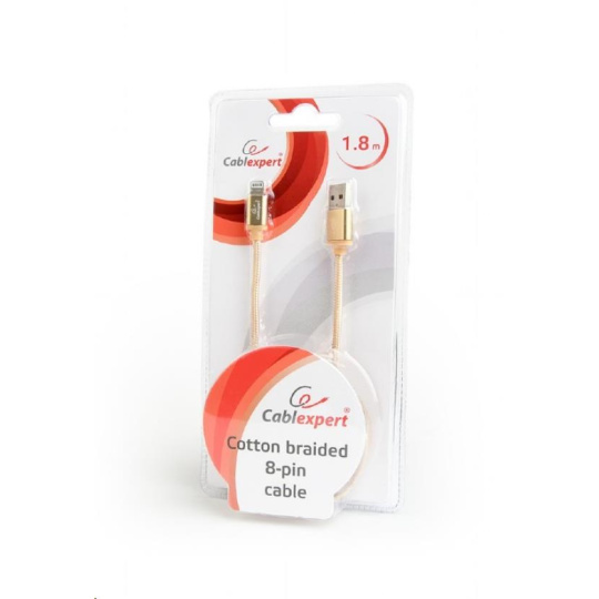 GEMBIRD Kabel CABLEXPERT USB 2.0 Lightning (IP5 a vyšší) nabíjecí a synchronizační kabel, opletený, 1,8m, zlatý, blister