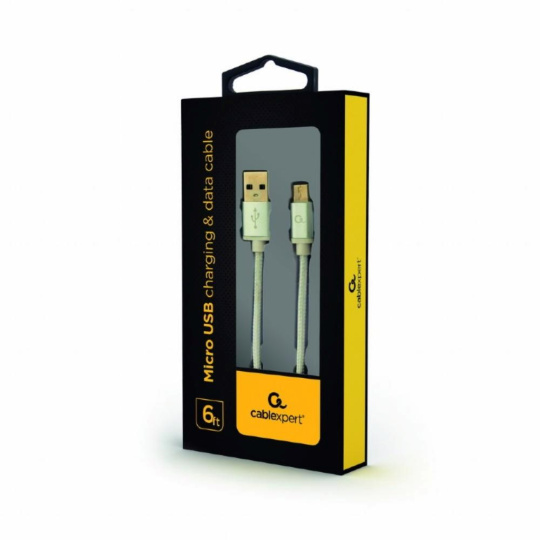 GEMBIRD Kabel CABLEXPERT USB A Male/Micro B Male 2.0, 1,8m, opletený, stříbrný, blister