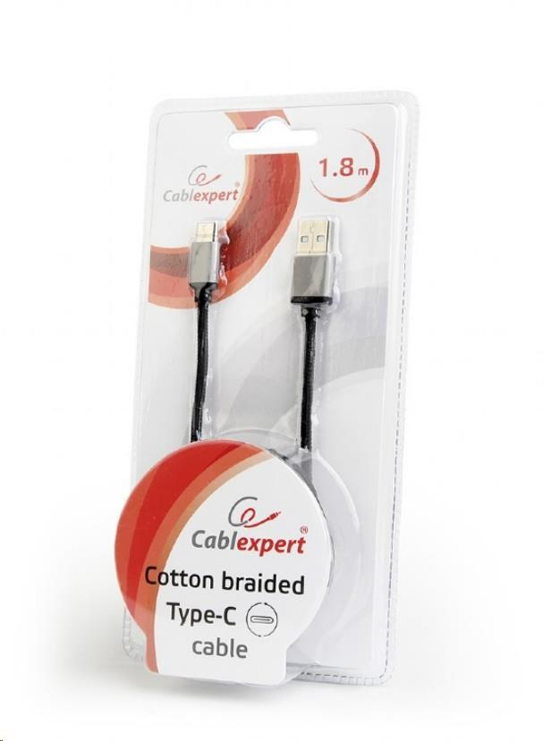 GEMBIRD Kabel CABLEXPERT USB na USB-C kabel (AM/CM), 1,8m, opletený, černý, blister