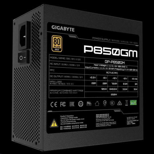 GIGABYTE zdroj P850GM, 850W, 80plus gold, modular, 120 mm fan