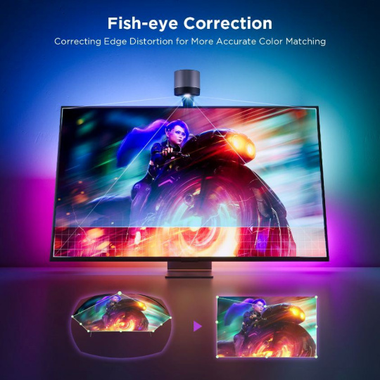 Speciální kamera s pokročilou technologií Envisual inteligentně rozpoznává a zachycuje barvy na obrazovce vaší televize nebo monitoru. Na základě této barevné analýzy automaticky vyhodnotí a nastaví ideální podsvícení. Užijte si synchronizaci barev bez zpoždění, aniž byste potřebovali HDMI kabel nebo byli omezováni streamovacími službami.