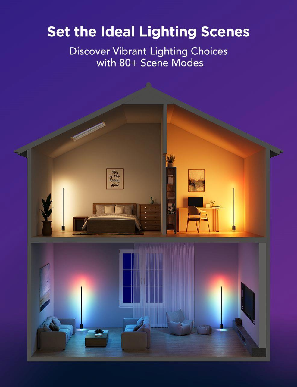 Floor Lamp 2 je nová generace podlahových lamp od Govee. Novinka je minimalistická podlahová lampa, navržená, aby perfektně zapadla do jakéhokoliv interiéru. Jednoduše se hodí všude, protože je ve zhasnutém stavu velmi nenápadná. Vše se změní po aktivaci, kdy se probere jejích 1725 lumenů. Díky diodám s technologií 4 v 1 RGBICWW dosahuje světlo ohromující intenzity. K dispozici je přes 16 milionů barev nebo bílá laditelná od 2200 do 6500 K. Lampa měří téměř 1,52 metru, ale zabírá minimální prostor a lze ji tak umístit doslova kamkoliv. Nejvíce jí to však sluší v rohu, kdy osvítí maximální prostor za sebou a vykouzlí na vaše zdi úžasně plynulé barevné přechody. Životnost lampy je u Govee standardních 50.000 hodin. Ovládání je možné aplikací Govee Home, Google Home, pomocí asistentů Google, Apple i Amazon. Nově je k připojení nabízen i protokol MATTER, takže lampu lze používat s většinou současných smart home systémů. Pro maximální pohodlí v balení naleznete i klasický dálkový ovladač, který je kdykoliv v pohotovosti, připnutý přímo k lampě. Samozřejmostí jsou přednastavené scény, několik režimů synchronizace s hudbou a pokud si ani tak nevyberete, čeká na vás DIY režim, který vám dá 100% kontrolu při které je jediný limit vaše fantazie.