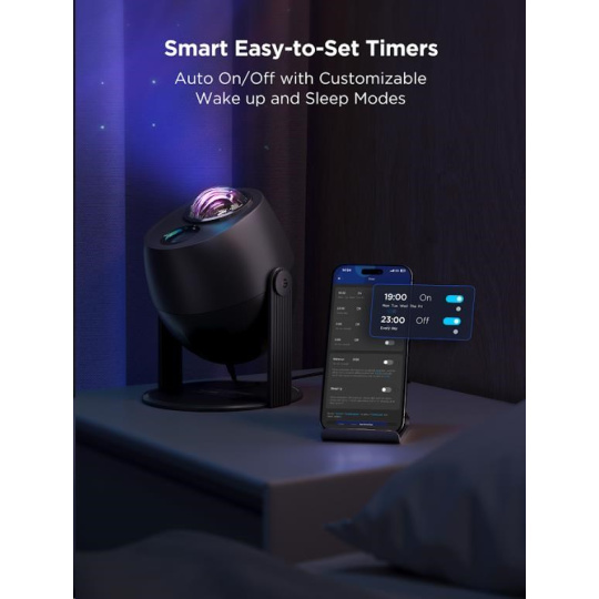 Govee Star Light Projector je také vybaven časovačem, který umožňuje nastavit automatické vypnutí, takže můžete snadno usínat pod hvězdnou oblohou, aniž byste se museli obávat, že projektor zůstane zapnutý přes noc. Tento projektor je skvělým doplňkem nejen do ložnice, ale také do obývacího pokoje, domácí kanceláře nebo pro jakoukoli speciální příležitost, kde chcete vytvořit unikátní atmosféru.
