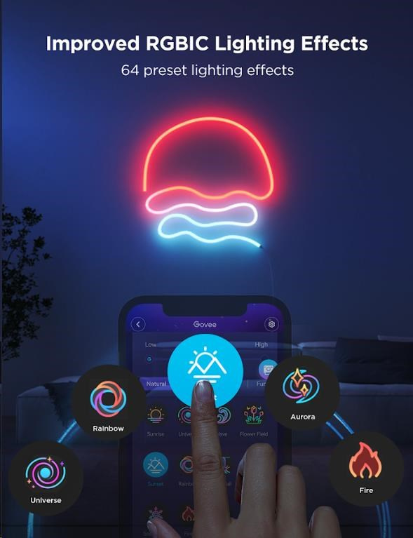 Govee přináší 2. generaci svých neonových pásků. Připravte se na řadu zásadních zlepšení. Vaše gamingové, pracovní nebo relaxační prostředí dostane novou dávku energie s Govee Neon 2. Tyto designové pásky, jsou nyní měkčí, takže tvarování je snadnější. Hotové tvary lze s pomocí přiloženého materiálu umístit na libovolný povrch a s pomocí aplikace a fotoaparátu si tvar do aplikace přenést. Na vytvořený vzor můžete namapovat 16,4 mil. barev a aplikovat množství efektů. 3m pásek se skládá ze 252 diod, což dává hustotu 84 LED/m. Příkon pásku je 36 W při plném výkonu a životnost je 50.000 hodin. Díky technologii RGBIC lze pásku přiřadit až 57 barev najednou v intenzitě 1-100 %. Pro zákazníky, kteří upřednostní přednastavené režimy pásek nabízí 64 světelných scén a 12 způsobů vizualizace hudby. Vybere si každý. Neon 2 se ovládají aplikací a je možné využít i asistenty, Google, Alexa a Siri. Zcela nově pásky podporují protokol Matter, takže integrace do většiny Smart Home prostředí je otázka několika vteřin. Instalace pásků se provádí pomocí přiložených klipů, vybavených silnou, oboustrannou 3M páskou, bez vrtání. K instalaci je nutný pevný povrch, při upevnění na omítku nelze pevnost spojení garantovat.