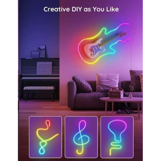 Instalace je velice jednoduchá pomocí 3M pásek. Govee Neon je pružný a ohebný pásek, který můžete tvarovat podle své představivosti. Světlo je vhodné pro všechny místnosti a záleží jen na vaší kreativitě.