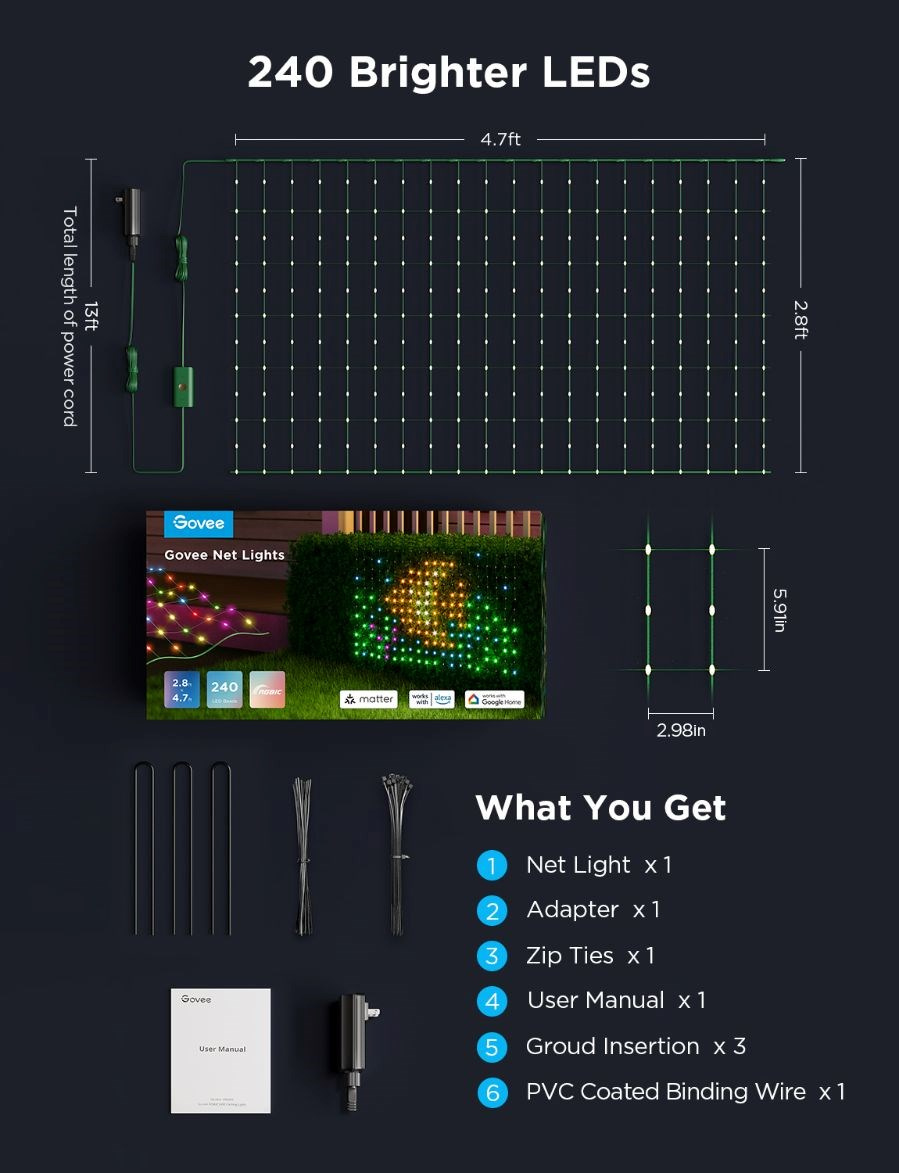 Govee RGBIC venkovní světelná síť - 1,2 x 1,2m Matter